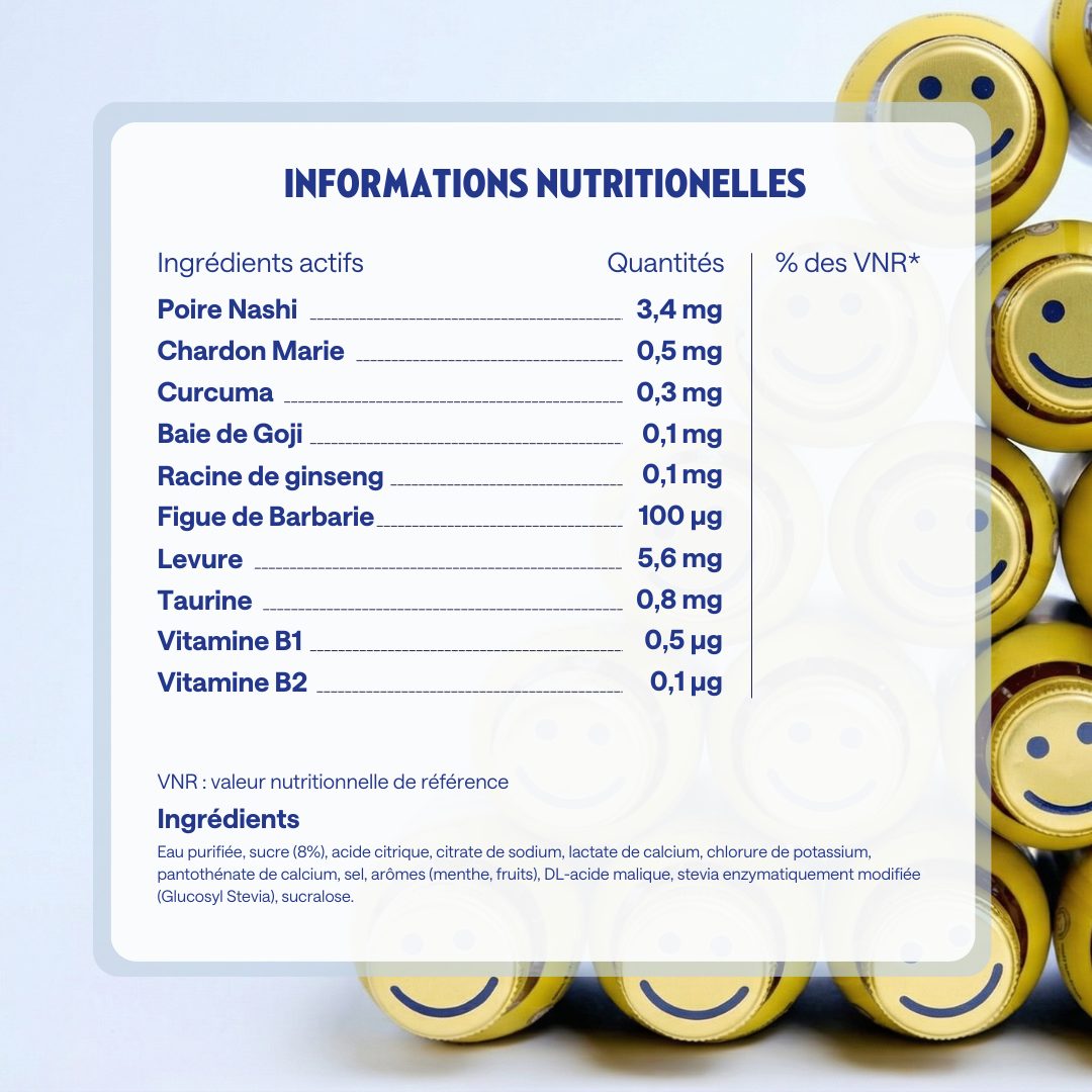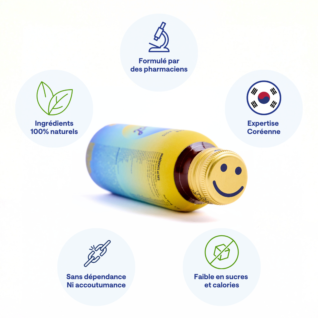 Réveille-toi plus léger, plus frais, avec l’énergie de profiter de ta journée, sans la gueule de bois qui vient tout gâcher. Plus de maux d'estomac, de sensation de déshydratation, tu viens de gagner une journée.